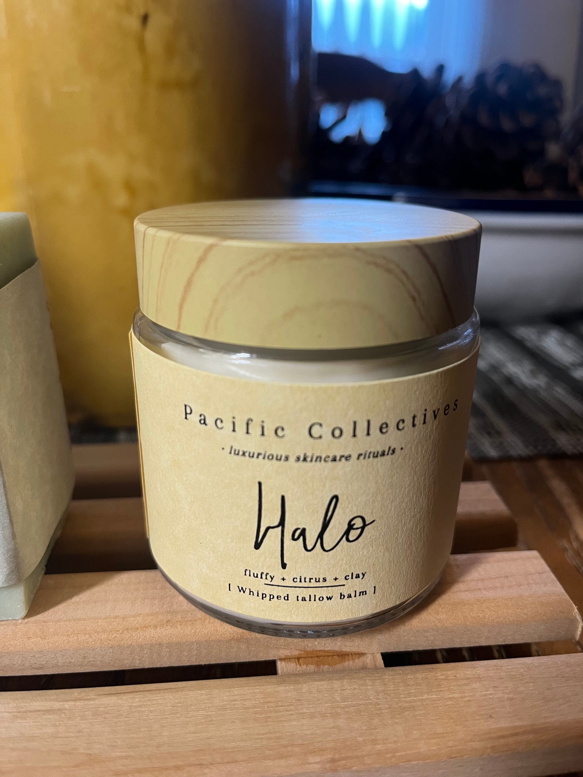 • Tallow Balm to deeply protect hands, feet, and elbows. Crafted with shea, jojoba, vitamin e. Bergamot, frankincense & vetiver essential oils and kaolin clay.