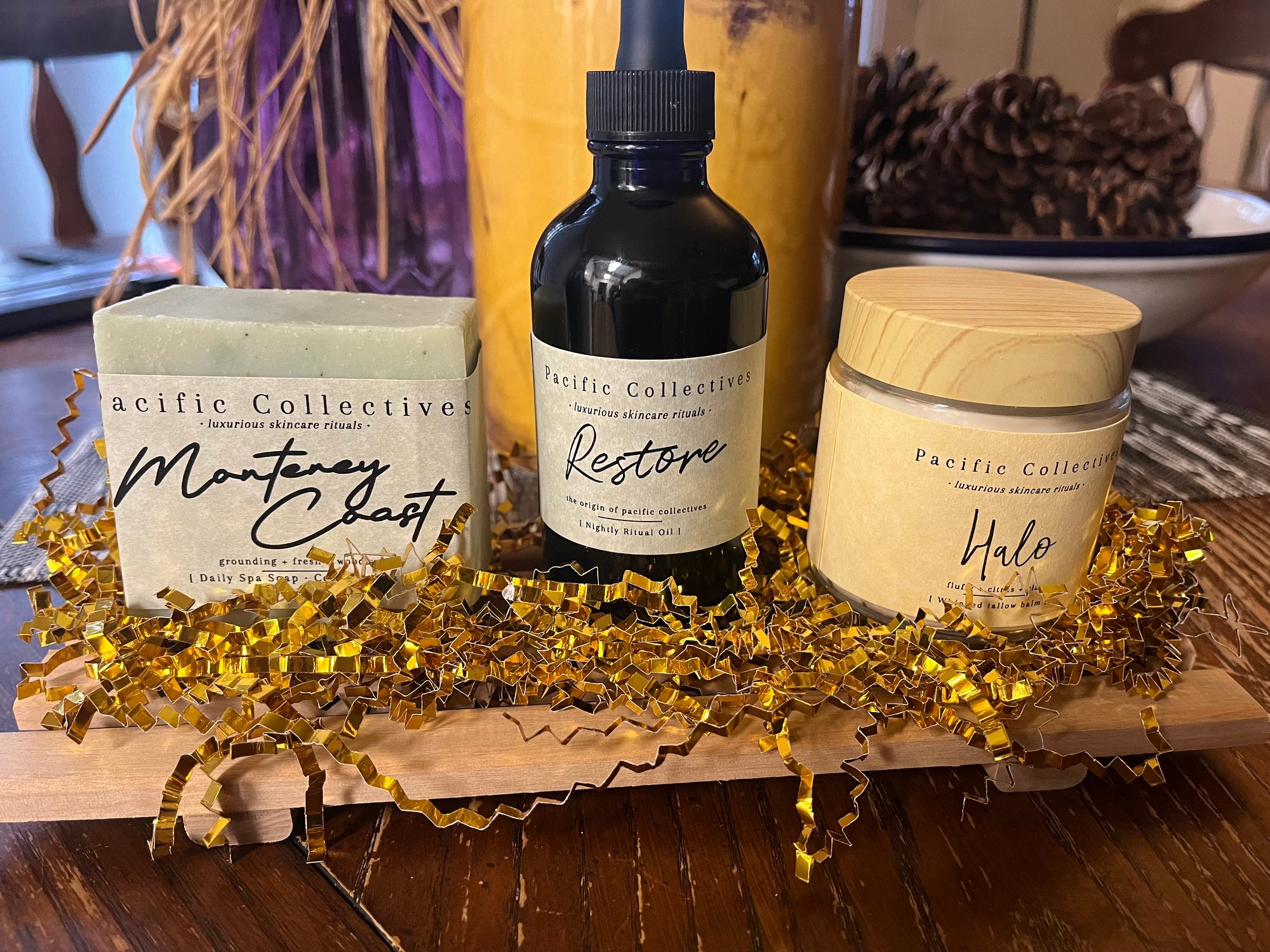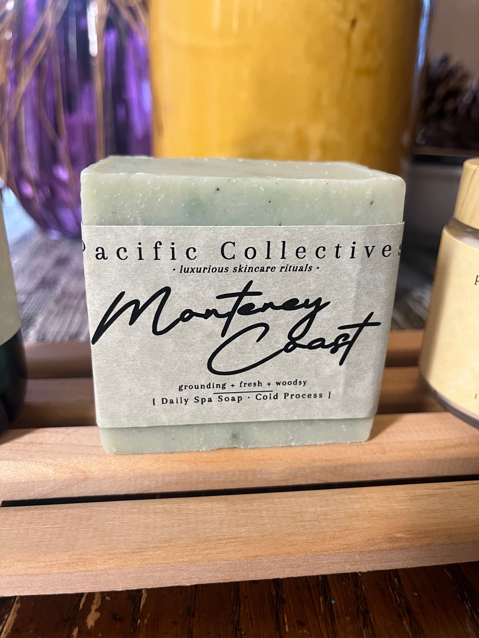 • Monterey Spa Bar for full-body cleansing. Tallow, coconut oil, jojoba & castor oil, fine sea salt, French green clay, cypres, cedarwood and sandalwood essential oils.